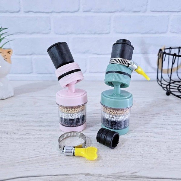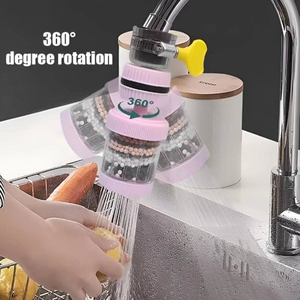 Es un filtro de agua para grifo que se puede rotar 360 grados.