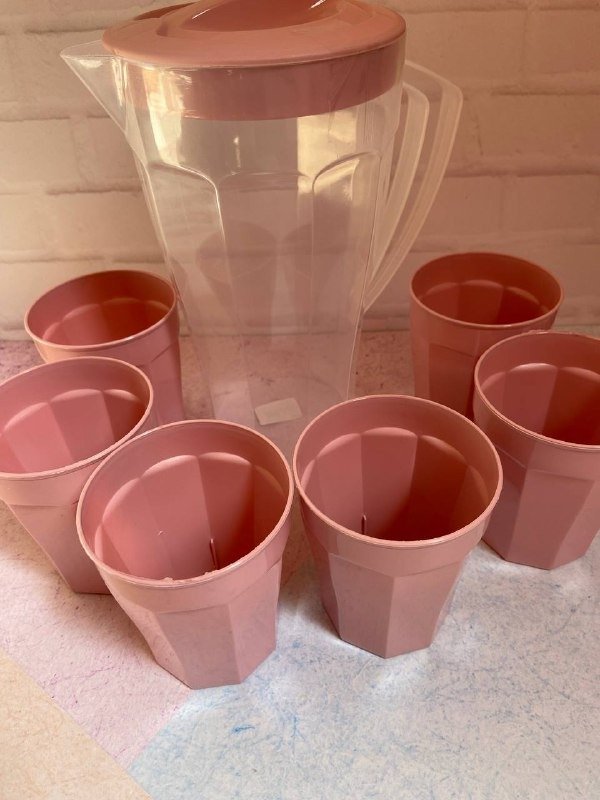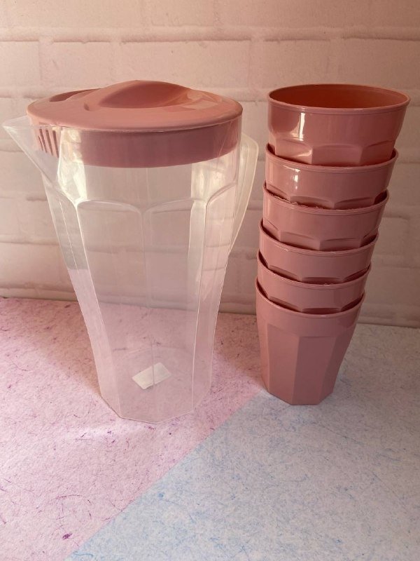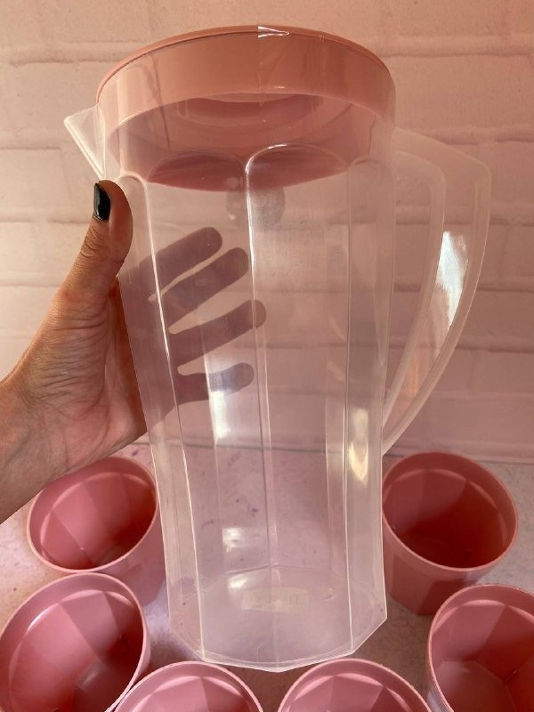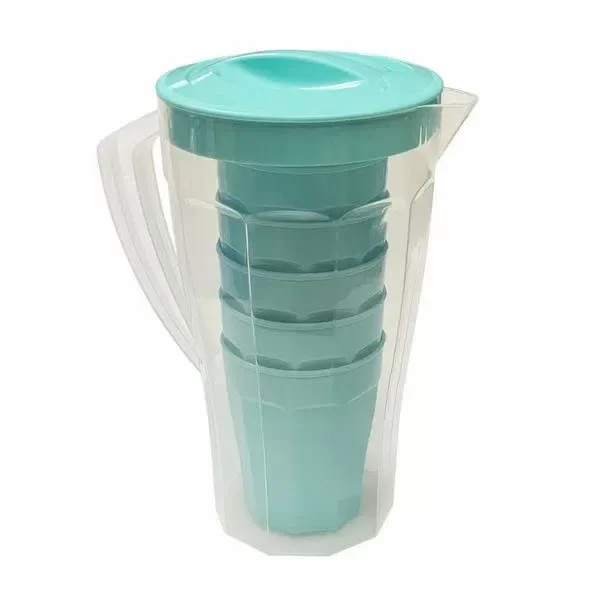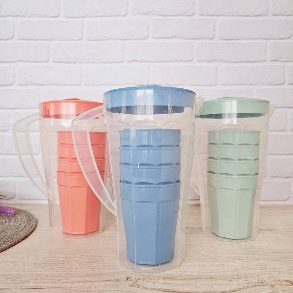 Jarra Facetada x 4 Vasos, muy bueno para bebidas frías, se encuentra disponible en 3 colores.