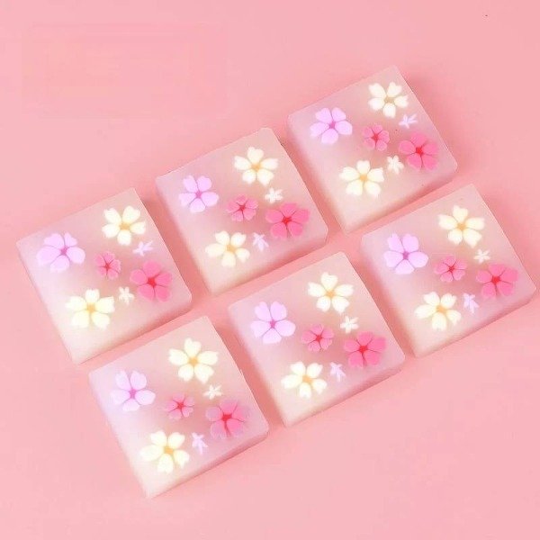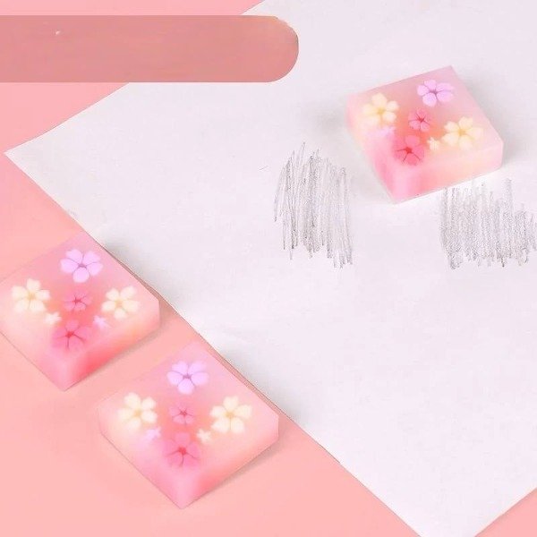 Gomas de borrar para niñas con flores, cuadradas.