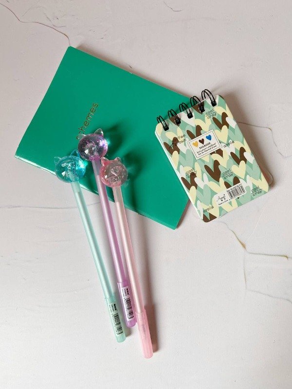 Microfibra infantil, tinta de color negra, trazo de 0,5mm, diseño con forma de gatito