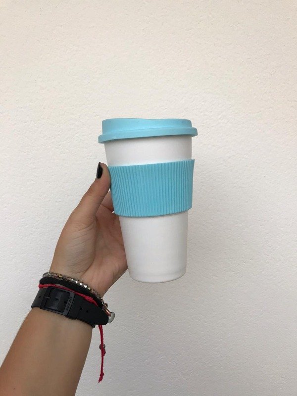 Vaso blanco con faja de silicona en color.